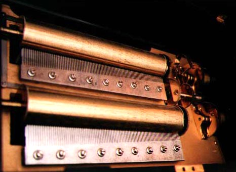 2本のシリンダーが同時回転しながら交代で演奏する。